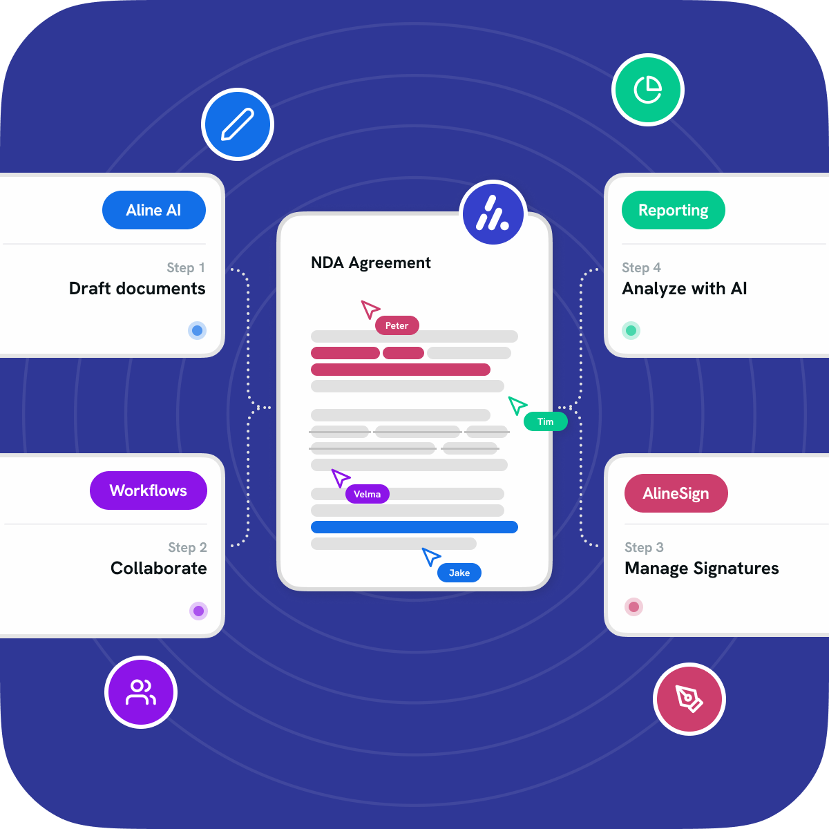 Draft, negotiate, and sign contracts in record time with Aline Al, boosting productivity and reducing legal bottlenecks.