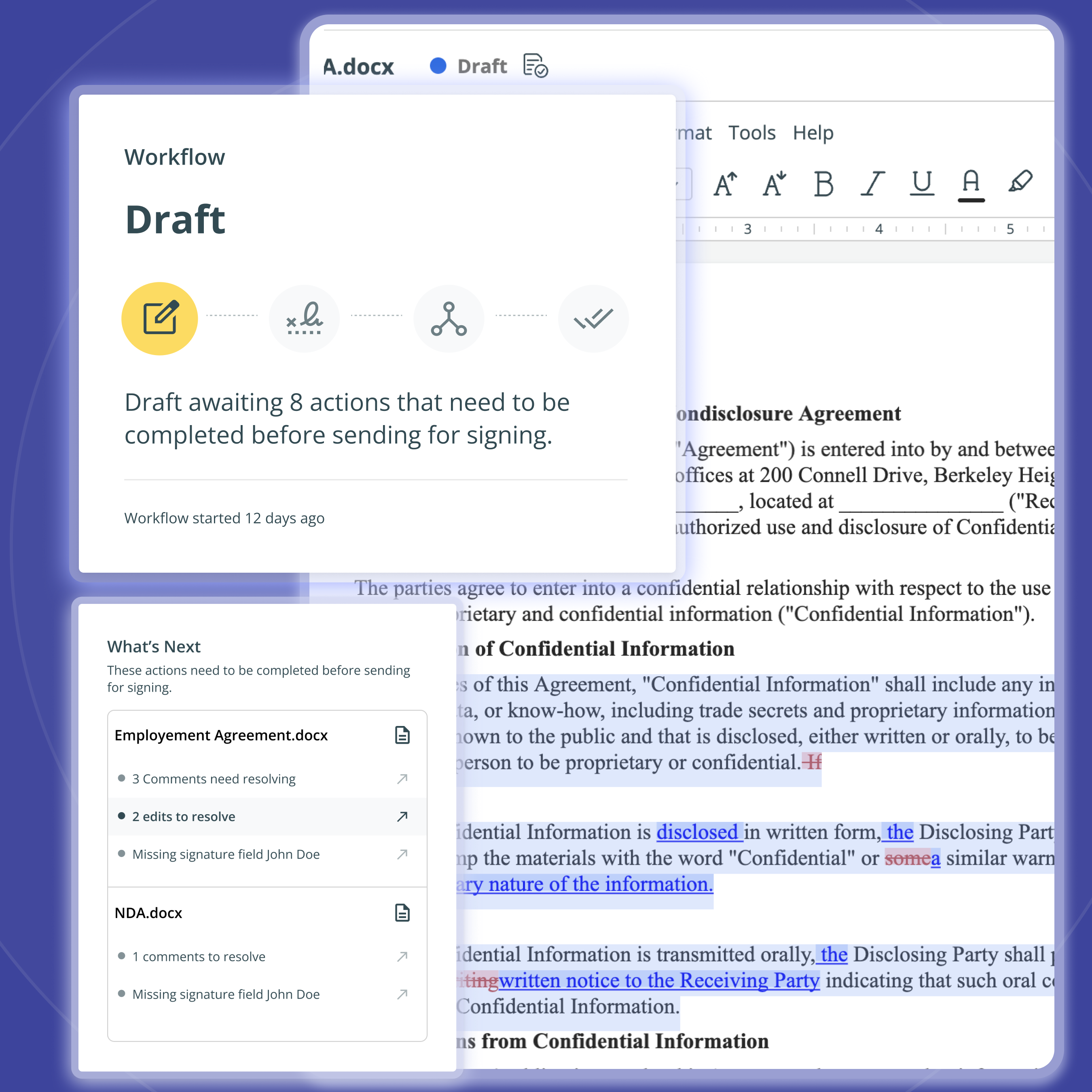 ✔️ Draft accurate documents fast without expensive counsel. ✔️ Redline with saved preferred positions and prebuilt playbooks. ✔️ Compare terms against your playbooks and approved language.