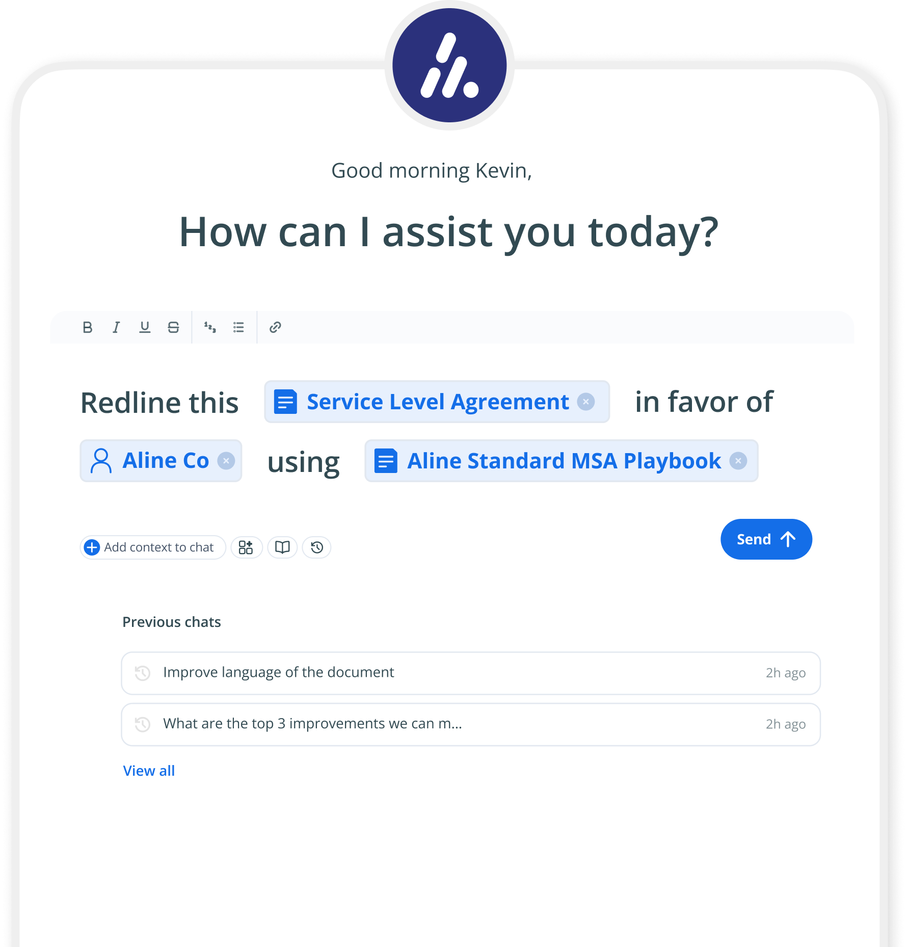 Legal, sales, procurement, finance, and the C-suite can all use Aline to do legal work at a higher-caliber.