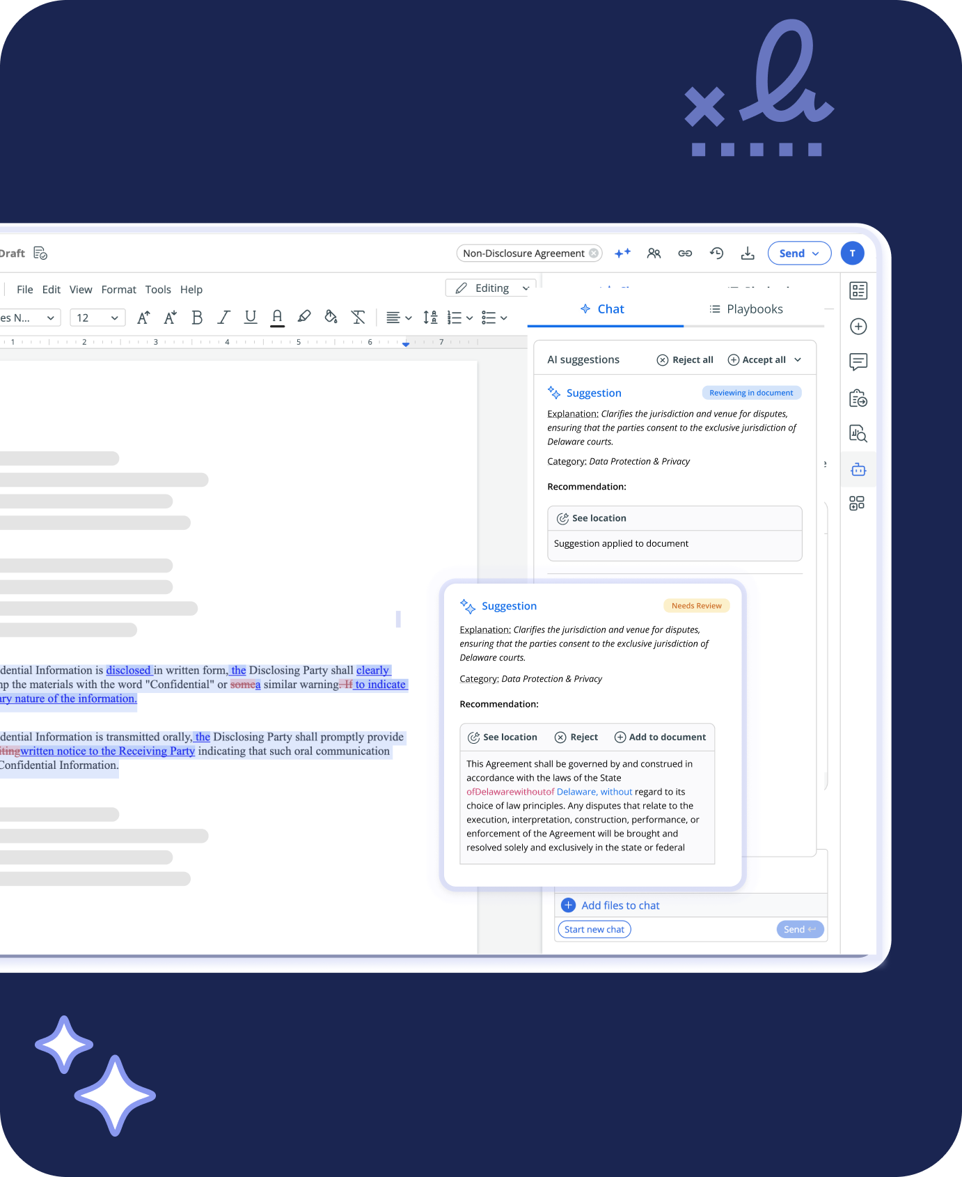 Aline identifies non-standard terms, missing clauses, and risky language before review, so counsel focuses on judgment—not triage. Export clause-level summaries for diligence, audits, or board requests in minutes.